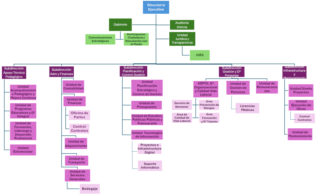 Su estructura organizacional está orientada a promover un liderazgo educativo efectivo, capaz de impulsar procesos de mejora continua en todos los niveles del sistema.